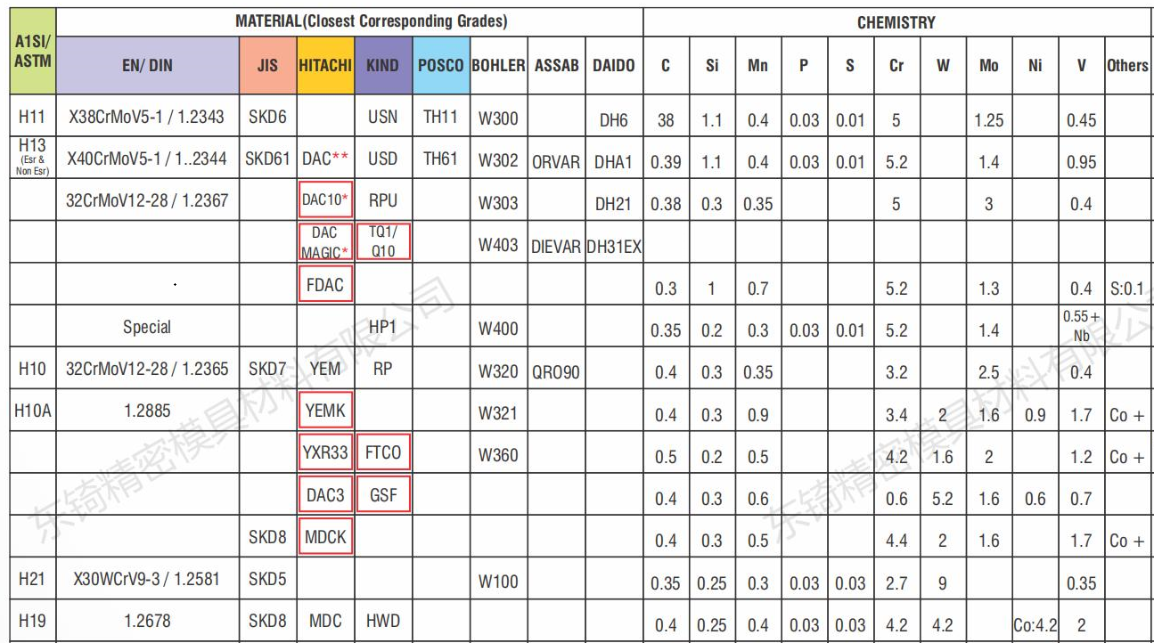 以下是常用热锻模具材料各国对照表(包含材料化学成分)。